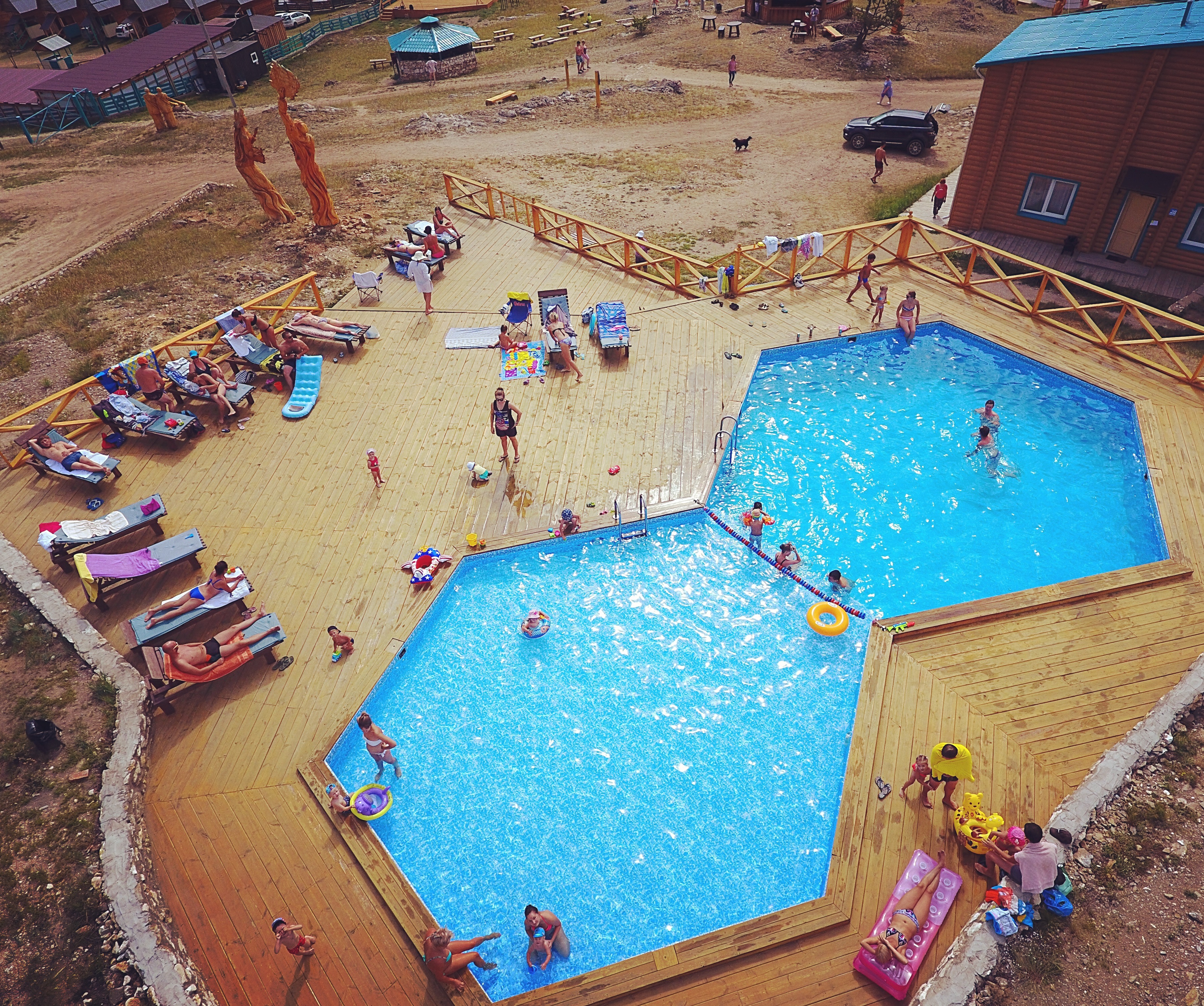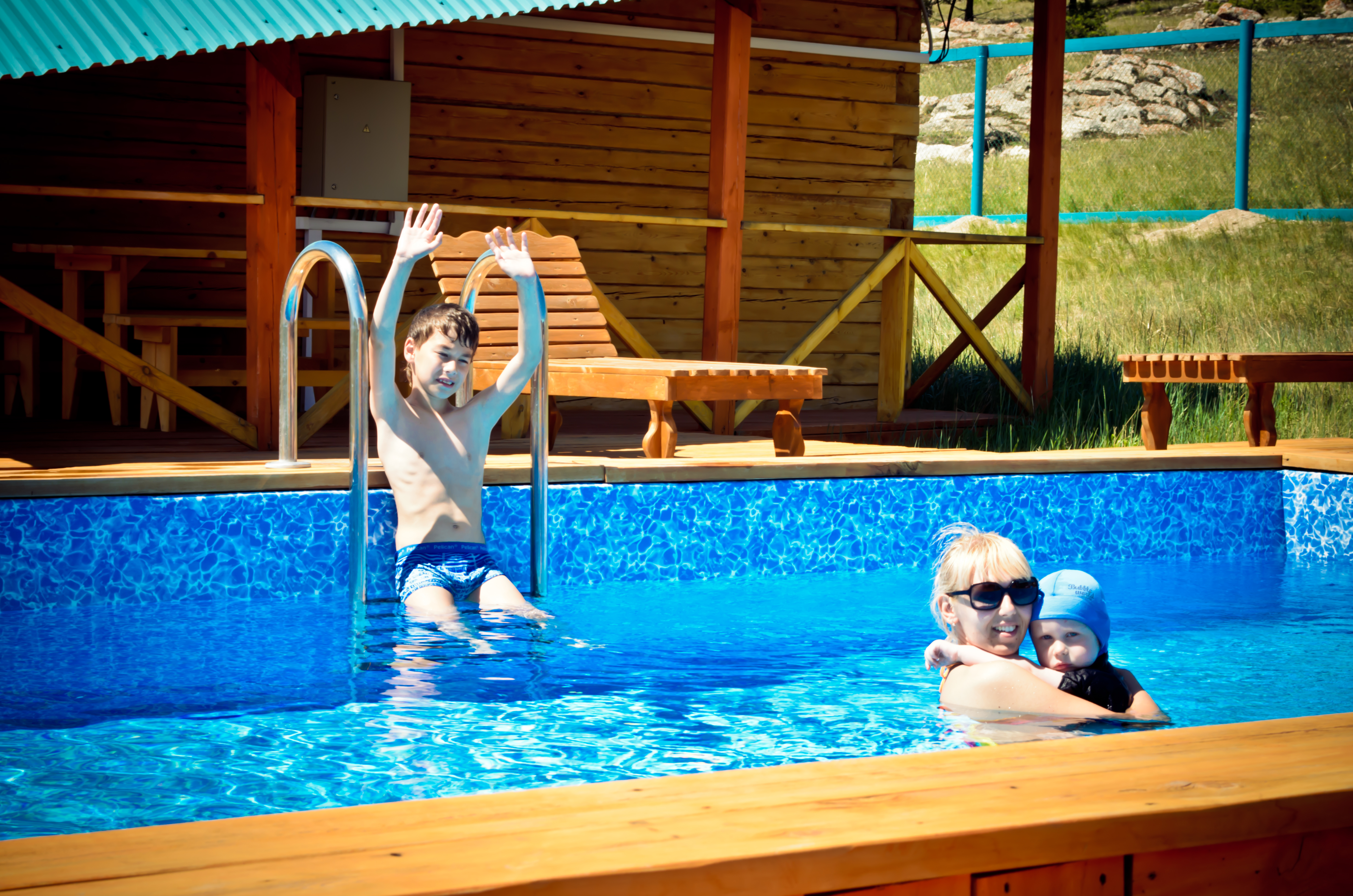 Каким бы теплым ни считался Куркутский залив, не у каждого хватит смелости окунуться в байкальскую воду. Специально для таких случаев на территории нашей базы отдыха расположены 3 теплых бассейна.