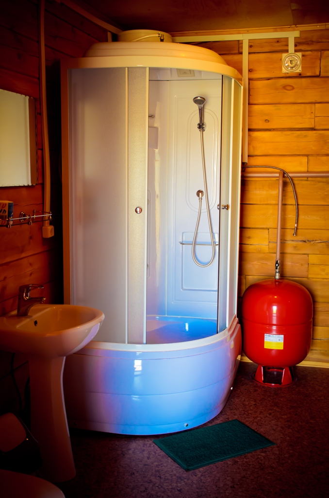 в ванной комнате: душевая кабина, раковина, унитаз.