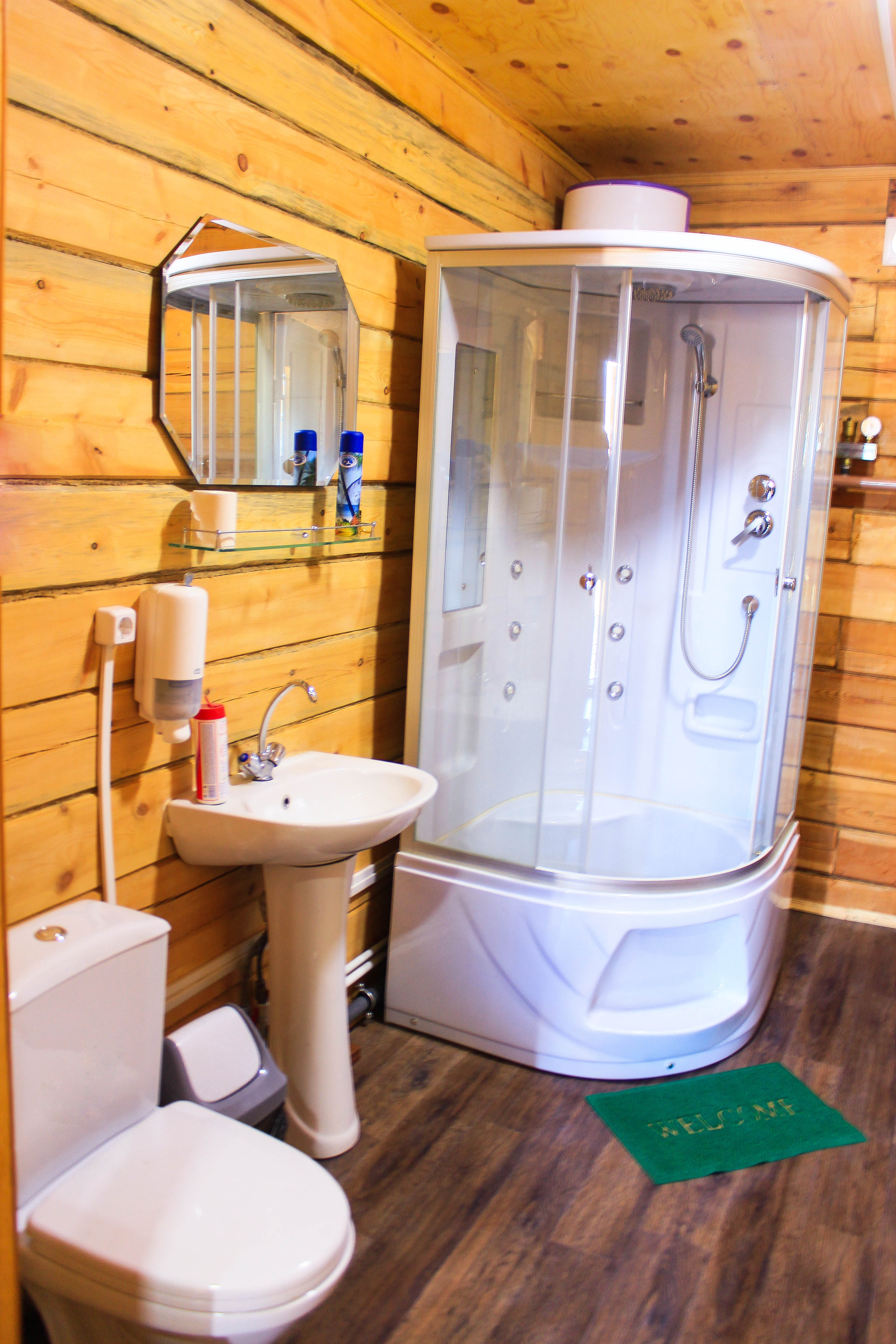 5 благоустроенных бревенчатых домика с мансардами и просторными террасами, способные разместить компанию на 10-12 человек, 2 спальни (с двуспальными кроватями), гостиная, спутниковое ТВ, обеденная группа, холодильник, электрочайник;